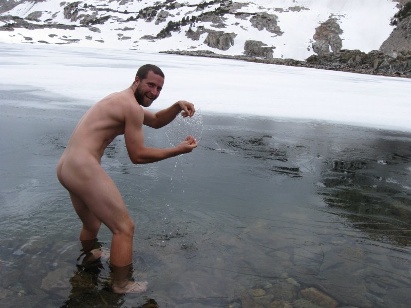 Голые парни купаются зимой